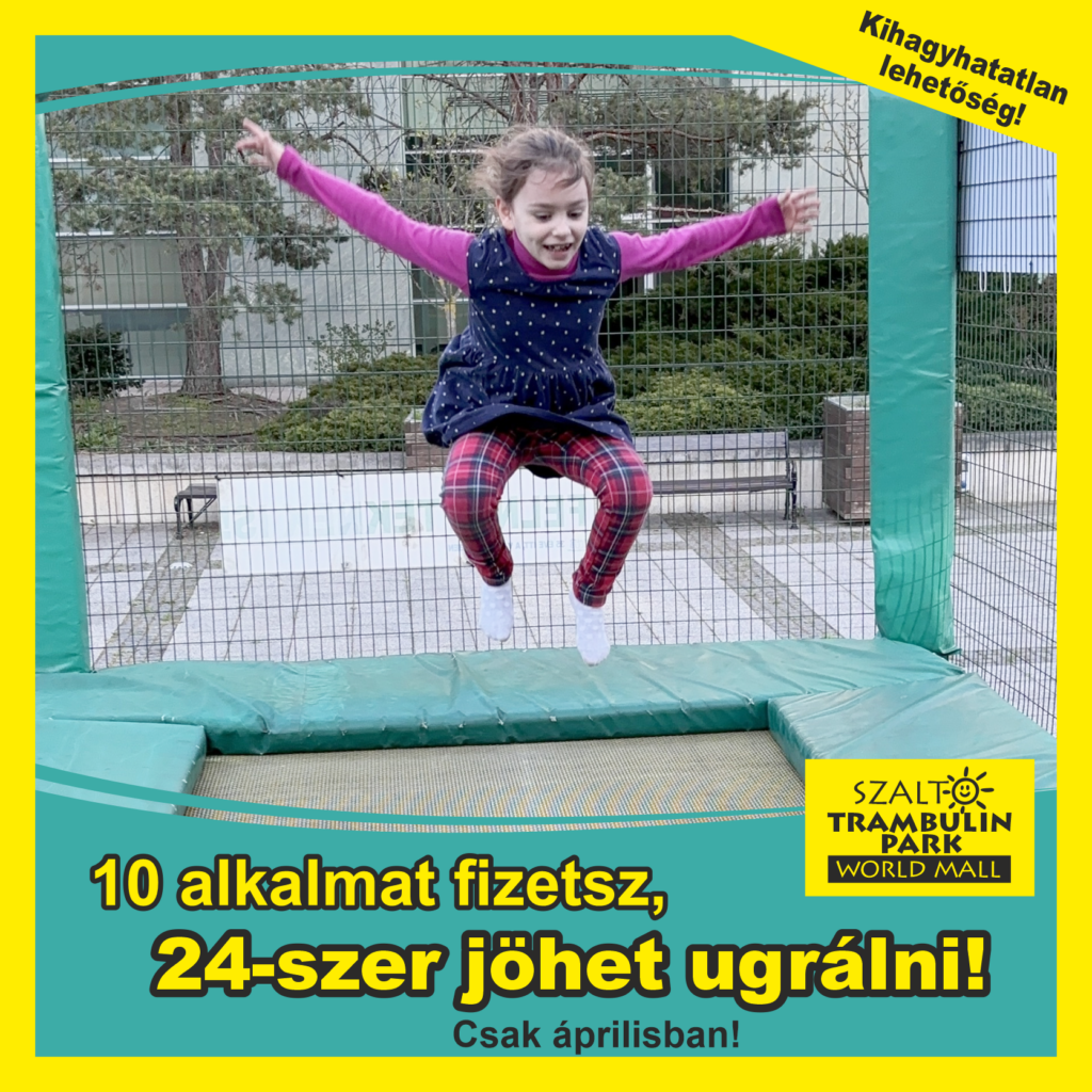 Most a 10 alkalmas trambulinbérlettel 24-szer jöhet ugrálni a gyermeked.